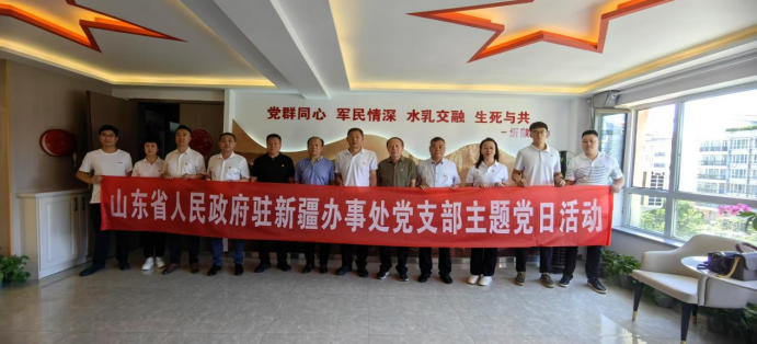 為慶祝中國(guó)共產(chǎn)黨成立104 周年,傳承紅色基因,弘揚(yáng)沂蒙精神,7月4日下午,山東省人民政府駐新疆辦事處黨支部聯(lián)合山東交工建設(shè)集團(tuán)有限公司一分公司黨支部、新疆沂蒙商會(huì)黨支部,在沂蒙精神新疆展館開展“七一榮光映初心 沂蒙精神潤(rùn)邊疆”主題黨日活動(dòng)。
