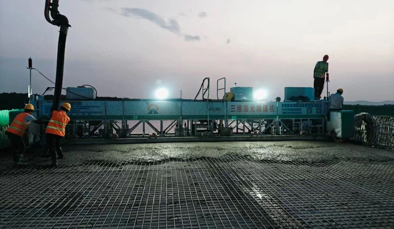 近日,董梁高速項(xiàng)目在K85+033沭河大橋、k89+895.5尹肖路分離立交、k88+705.5X022莒道線分離立交等橋面鋪裝施工現(xiàn)場中成功引入三維激光攤鋪機(jī),這一舉措成為項(xiàng)目踐行綠色低碳理念的關(guān)鍵實(shí)踐。該設(shè)備的應(yīng)用不僅顯著提升橋面施工質(zhì)量與作業(yè)效率,更為工程建設(shè)注入強(qiáng)勁“綠色動能”。